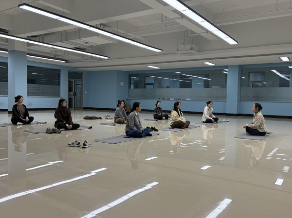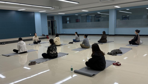 课程从基础的呼吸调节开始,授课教师通过循序渐进的引导,带领大家练习拉伸、扭转等瑜伽体式。老师们随着轻柔的音乐调整呼吸、舒展肢体,专注感受肌肉的拉伸与身心的放松,疲惫感在一呼一吸、一招一式中逐渐消散,取而代之的是一种轻盈与舒畅。